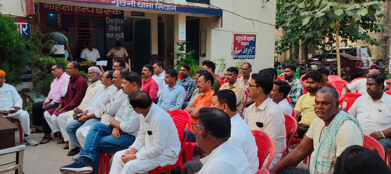 दशहरा/दुर्गापूजा के निमित्त शांति समिति की बैठक आयोजित थाना परिसर में प्रखंड प्रमुख विंध्यवासिनी नारायण सिंह की अध्यक्षता में आयोजित की गई। बैठक में मौजूद सामाजिक राजनीतिक कार्यकर्ताओ ने अधिकारियों के समक्ष अपनी बात रखते हुये कहा कि गुठनी बाजार,तेनुआ मोड़,गुठनी चौराहा सहित अन्य भीड़ वाले स्थान अतिक्रमण के शिकार है इसको हटाने के लिये प्रयास किया जाय,दुर्गापूजा के मौके पर पुलिस गश्त ज्यादा व गंभीरता के साथ किया जाय,डीजे संचालकों की बैठक कर उन्हें अश्लील गाने न बजाने व बहुत तेज आवाज में नही बजाने का निर्देश दिया जाय।