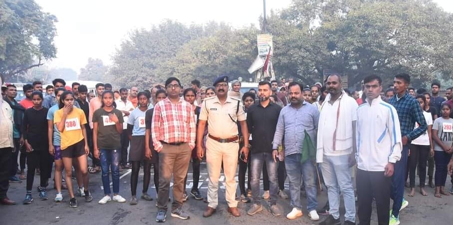 दौड़ प्रतियोगिता का आरंभ पॉइंट गुठनी चौराहा बनाया गया था जहां से गुठनी थानाध्यक्ष सह पुलिस निरीक्षक रामबालक यादव ने हरी झंडी दिखाकर कर आरंभ किया। पुरुष धावक दौड़ते हुये बरपलिया के समीप बनाये गये पॉइंट तथा महिला धाविकाये बौडी गांव के समीप बनाये गए पॉइंट से वापस स्टेडियम पहुच कर अपनी दूरी तय की। पुरुष वर्ग में प्रथम द्वितीय से दस तक क्रमशः अभिषेक कुमार,रोहित कुमार,आकाश कुमार,शुलभ चंद्रा,शंभु कुमार,पिंटू कुमार,राजपाल राजभर,नवीन यादव,पुनदेव कुमार,सूरज कुमार तथा महिला वर्ग में काजल पासवान,आँचल पासवान,वंदना सिंह,सोनी खातून व नगमा शामिल है।